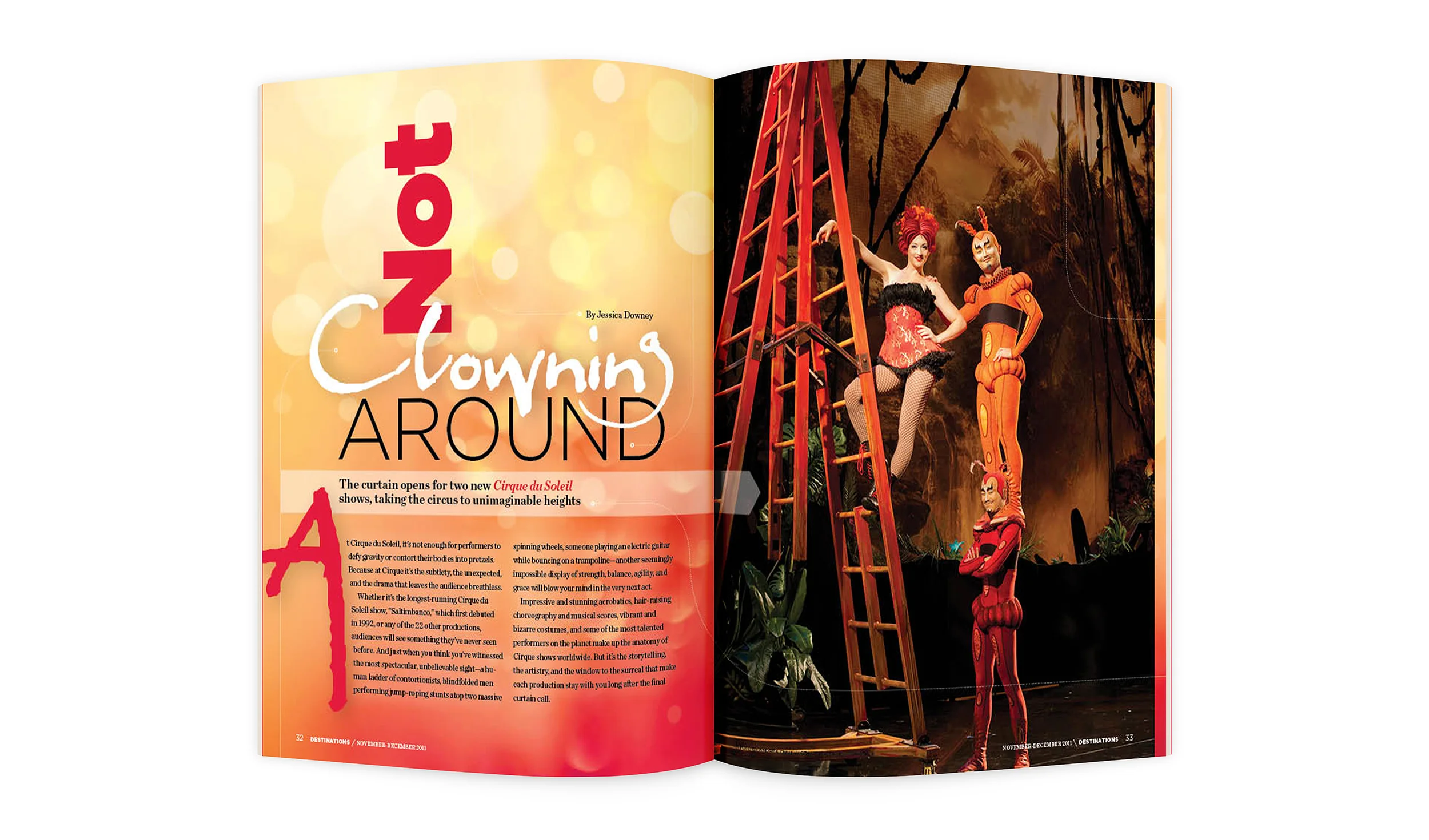 But another element sets Cirque du Soleil productions apart from other circuses. In most Cirque shows, the clowns don’t juggle or bounce aimlessly around the stage. They are not clumsy or bumbling. Their humor is subtle, choreographed, and self-deprecating, as they mimic other performers in the show or try to escape contraptions and apparatus easily wielded by acrobats. And this is all part of the script. “The clowning plays that roll of almost making fun of ourselves,” D’Amico explains. “The clowns will do a number where they mimic what an aerialist just did. It’s a little wink; lets not take ourselves too seriously—we’re a circus.”